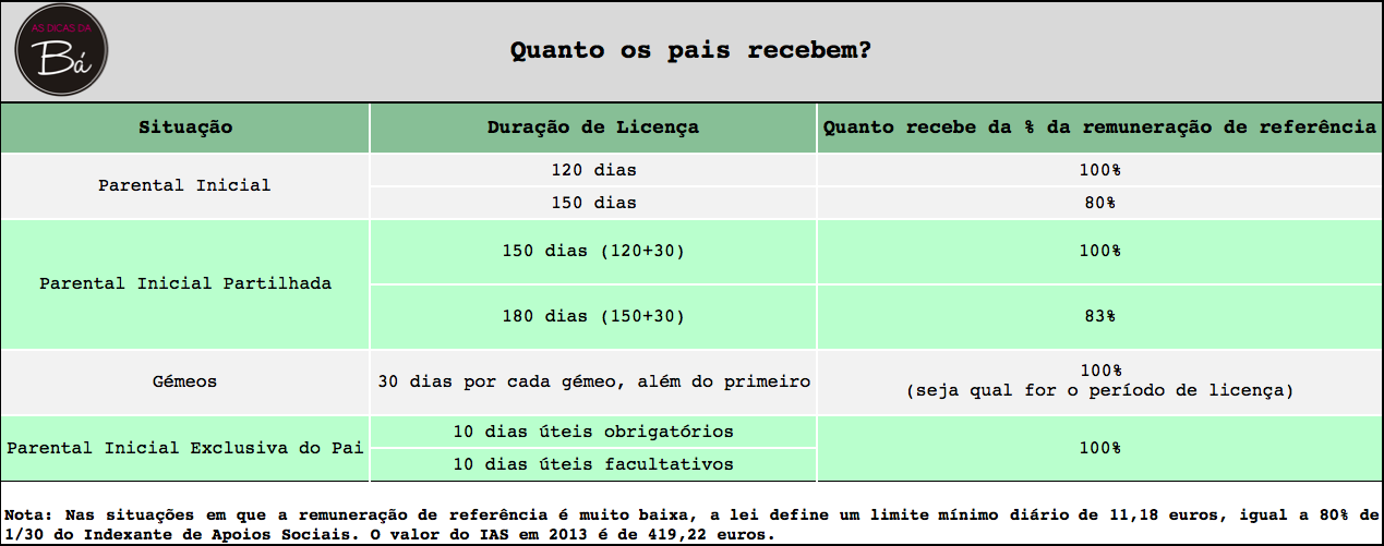 Para quem vai ser pai ou mamã fica aqui a dica sobre quanto os pais recebem.