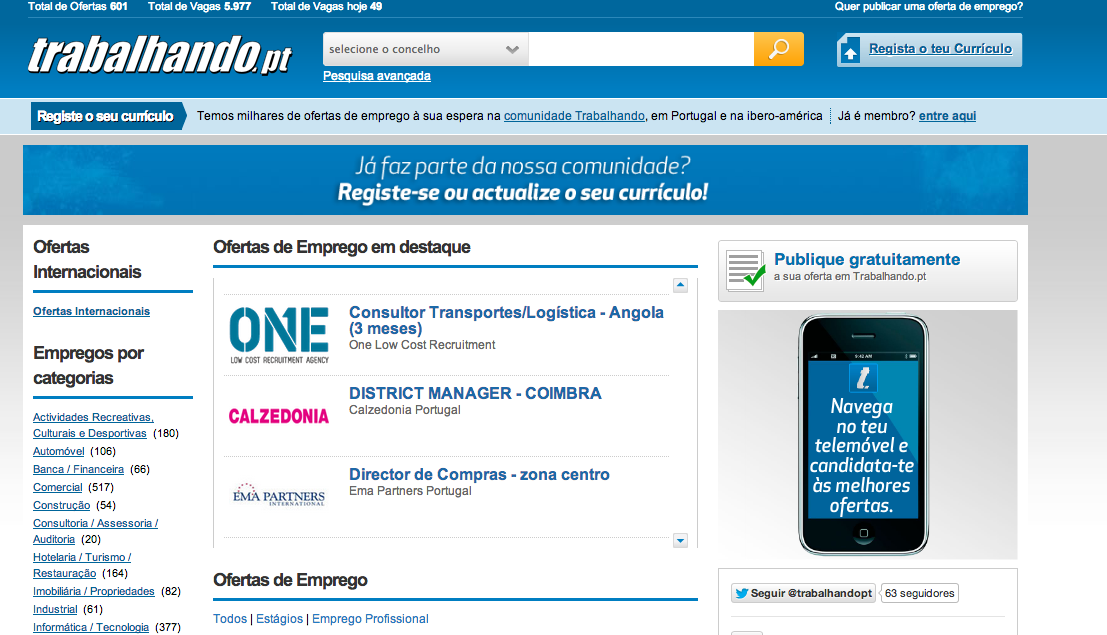 No portal de emprego poderão registar-se alunos e ex-alunos e colocar o seu currículo. Aí poderão encontrar as ofertas da comunidade Trabalhando e também ofertas exclusivas da sua universidade.
